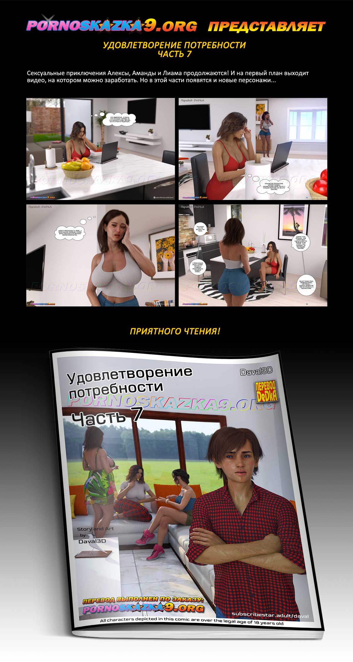 Порно комикс Удовлетворение потребности. Часть 7. Сексуальные приключения Алексы, Аманды и Лиама продолжаются! И на первый план выходит видео, на котором можно заработать. Но в этой части появятся и новые персонажи…